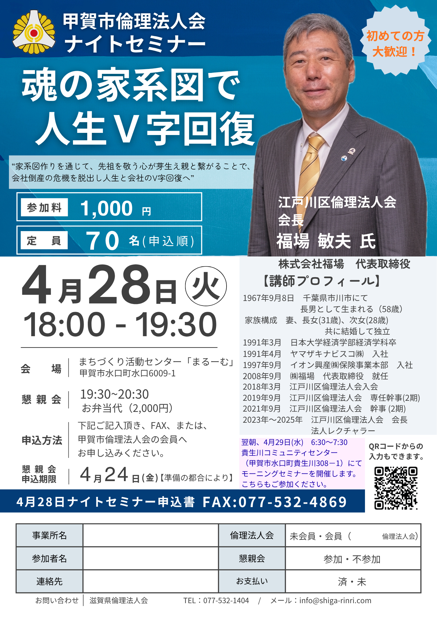 2023年9月~2025年9月 江戸川区倫理法人会 会長 、法人レクチャラー