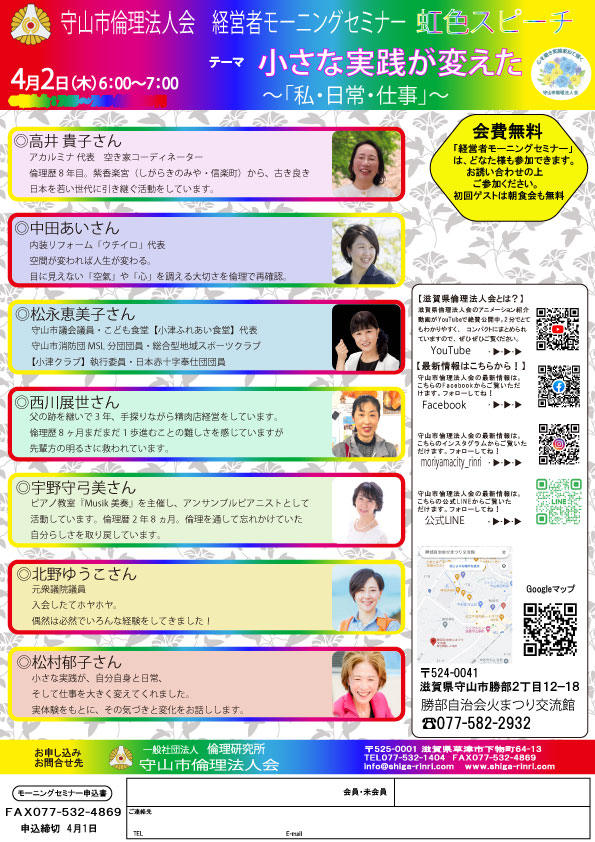 4月2日木曜日AM6:00~7:00 経営者モーニングセミナー(ゲストの方は参加費無料)
