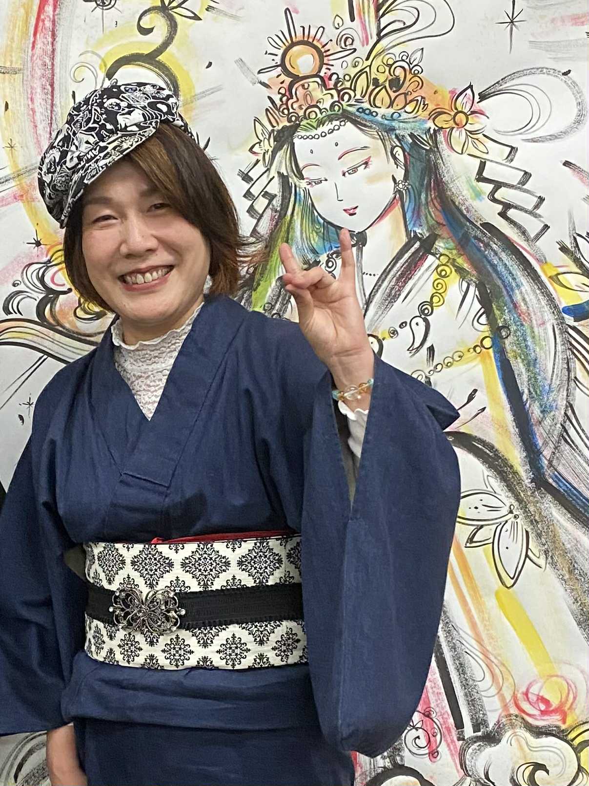 日本の着物文化の衰退とネガティブな着付に対するイメージを払拭したいという想いから、洋服と着物を組み合わせて着る「遊ブキモノ」を考案。新たな形で100年後その先まで着物文化を残していく事を使命にし、活動を続けています。日々頑張っている女性を笑顔にする活動(アロマタッチやフェムケア、着付け教室、自然派洗剤や化粧品販売)などもしています。